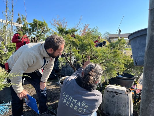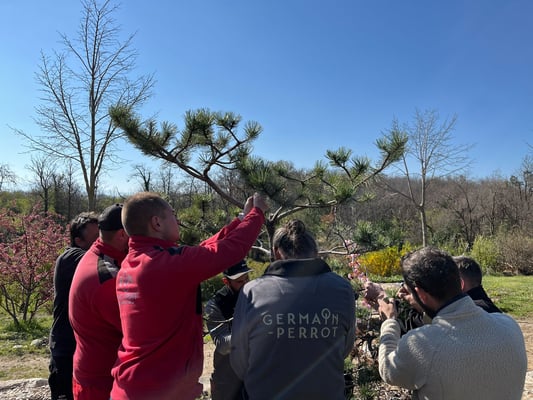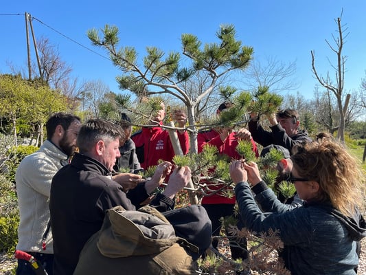 Les 4 et 5 Avril derniers, en partenariat avec le CFPPA Terre d'horizon et l'AFJJ (l'Association Française du Jardin Japonais), Joseph Grimaldi et Jeremy Venier, paysagistes de l'AFJJ, ont accueilli divers professionnels du secteur du paysage, afin d'intégrer les fondamentaux de la taille japonaise pour créer leurs propres paysages, en associant taille en nuages et travail en transparence, et ainsi de s'approcher des tailles japonaises (niwaki et karikomi).